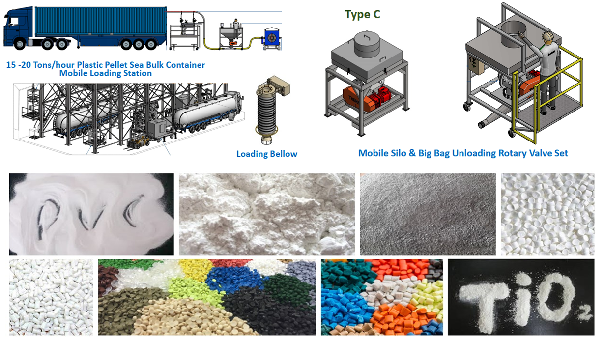 Bulk Container and Big Bag Unloading Mobile Rotary Valve set for Plastic Pellet Silo Feeding (Made in Thailand)